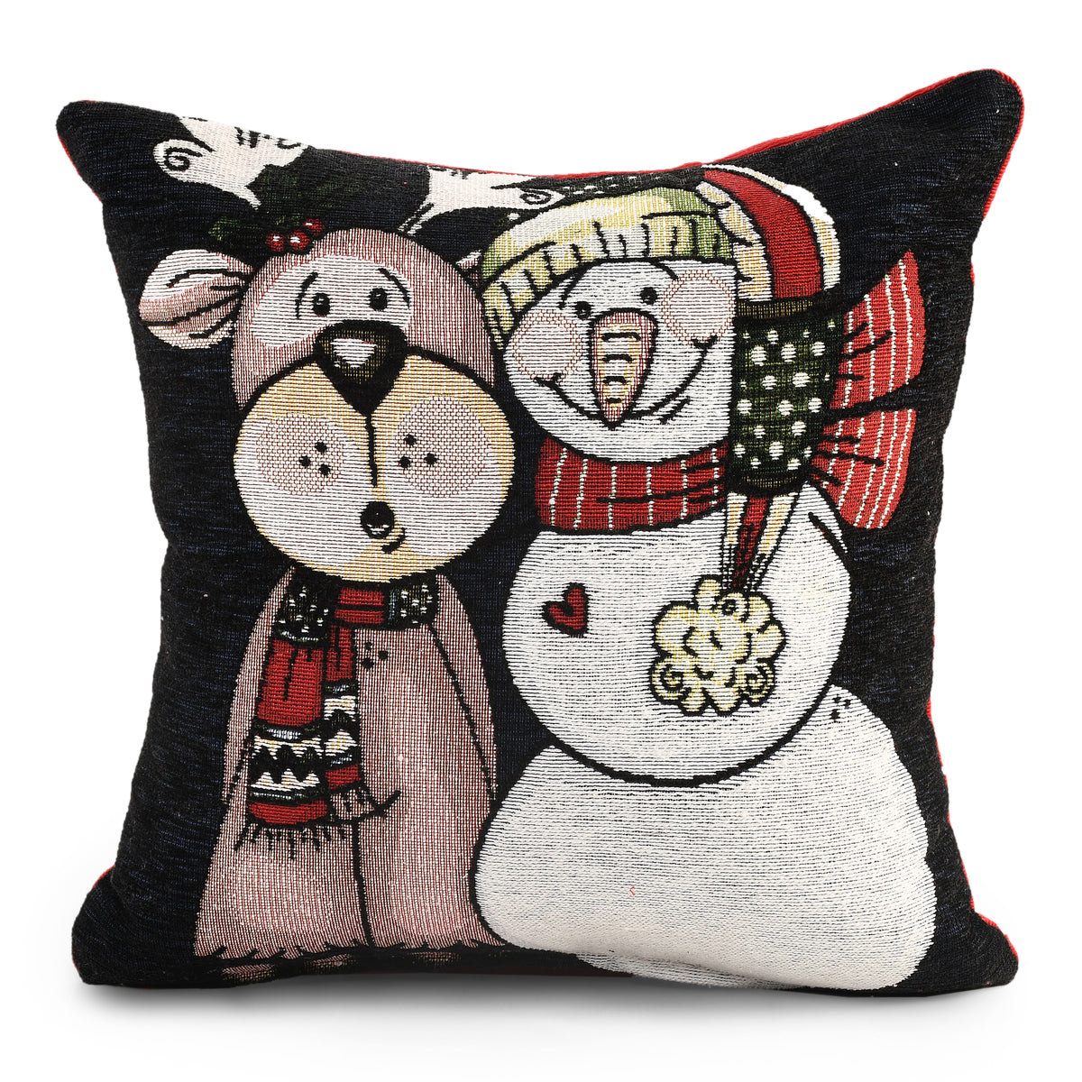 Velosso Snowman & Reindeer Christmas Festive Chenille Filled Cushion