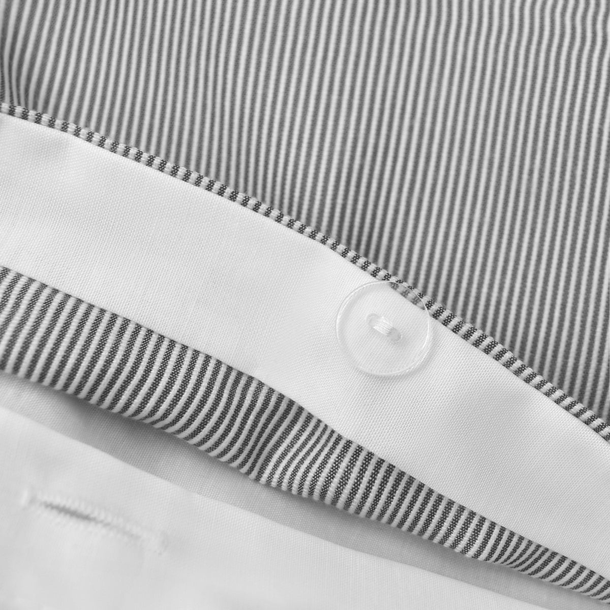 This black striped bedding set includes a duvet cover and pillowcases, with the single size including one pillowcase and the double, king and super king sizes each including two pillowcases. The polycotton composition ensures durability and softness, while the machine washable fabric makes care easy and convenient.