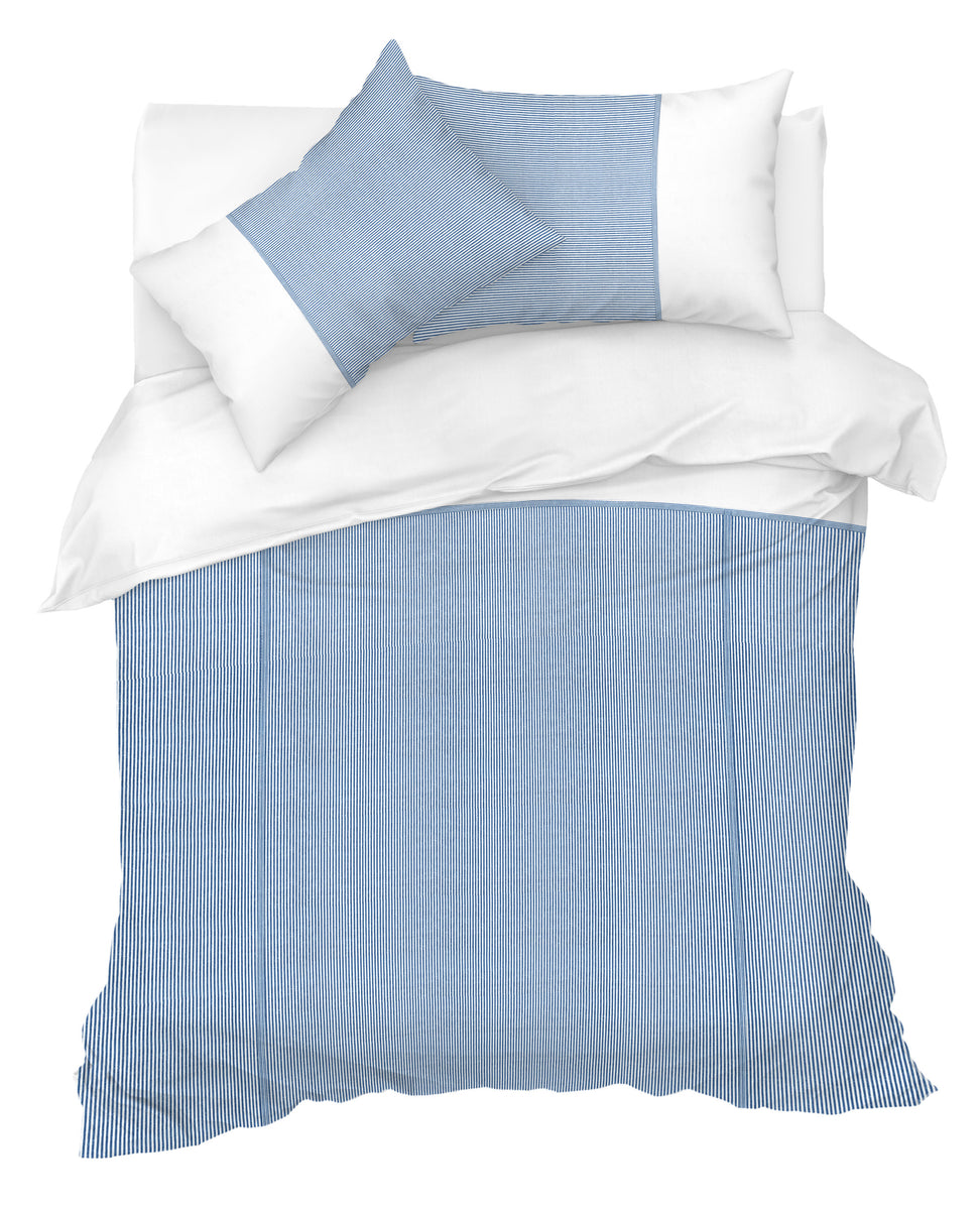 This blue striped bedding set includes a duvet cover and pillowcases, with the single size including one pillowcase and the double, king and super king sizes each including two pillowcases. The polycotton composition ensures durability and softness, while the machine washable fabric makes care easy and convenient.