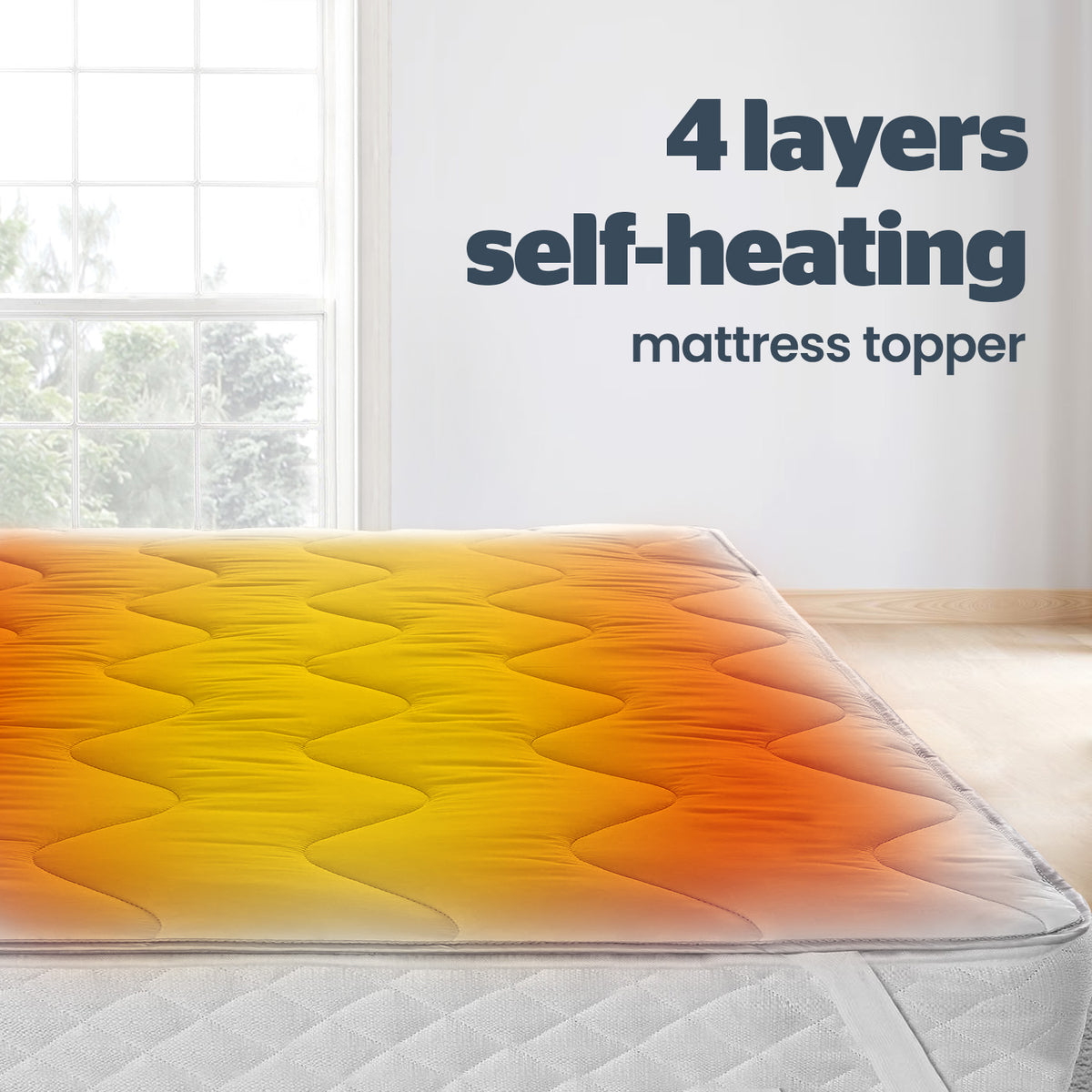 This innovative mattress topper provides an added layer of warmth with its unique 4-layer construction, adding a cozy 7.5 tog to your bed. It combines a heat-reflecting foil, a thermal lining, and a deeply filled quilted top to retain warmth and comfort without any need for electricity, helping you save on energy costs while staying warm and cozy. The top layer is quilted with ultra-soft fabric and deeply filled, enhancing both comfort and insulation. Elasticated straps stretch over your mattress to ensure a secure fit, and the topper is fully machine washable, making it easy to keep fresh and hygienic.