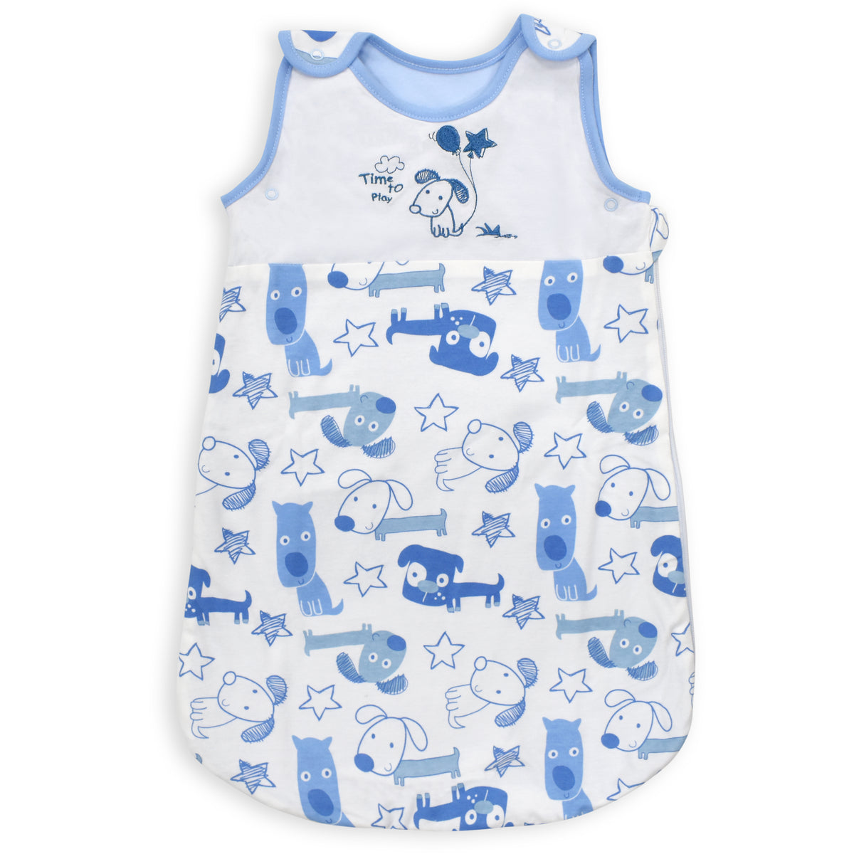 Our My Little World Time To Play Blue Dog Baby Sleeping Bag is the perfect addition to your baby's bedtime routine. This sleeping bag features a convenient zip opening for easy nappy changes, along with a popper opening at the top for hassle-free dressing. With plenty of wiggle room inside, your little one will stay comfy and cosy all night long. Made from 100% cotton, this sleeping bag is both breathable and machine washable for your convenience. Plus, the adorable blue dog design is sure to delight both you and your baby.