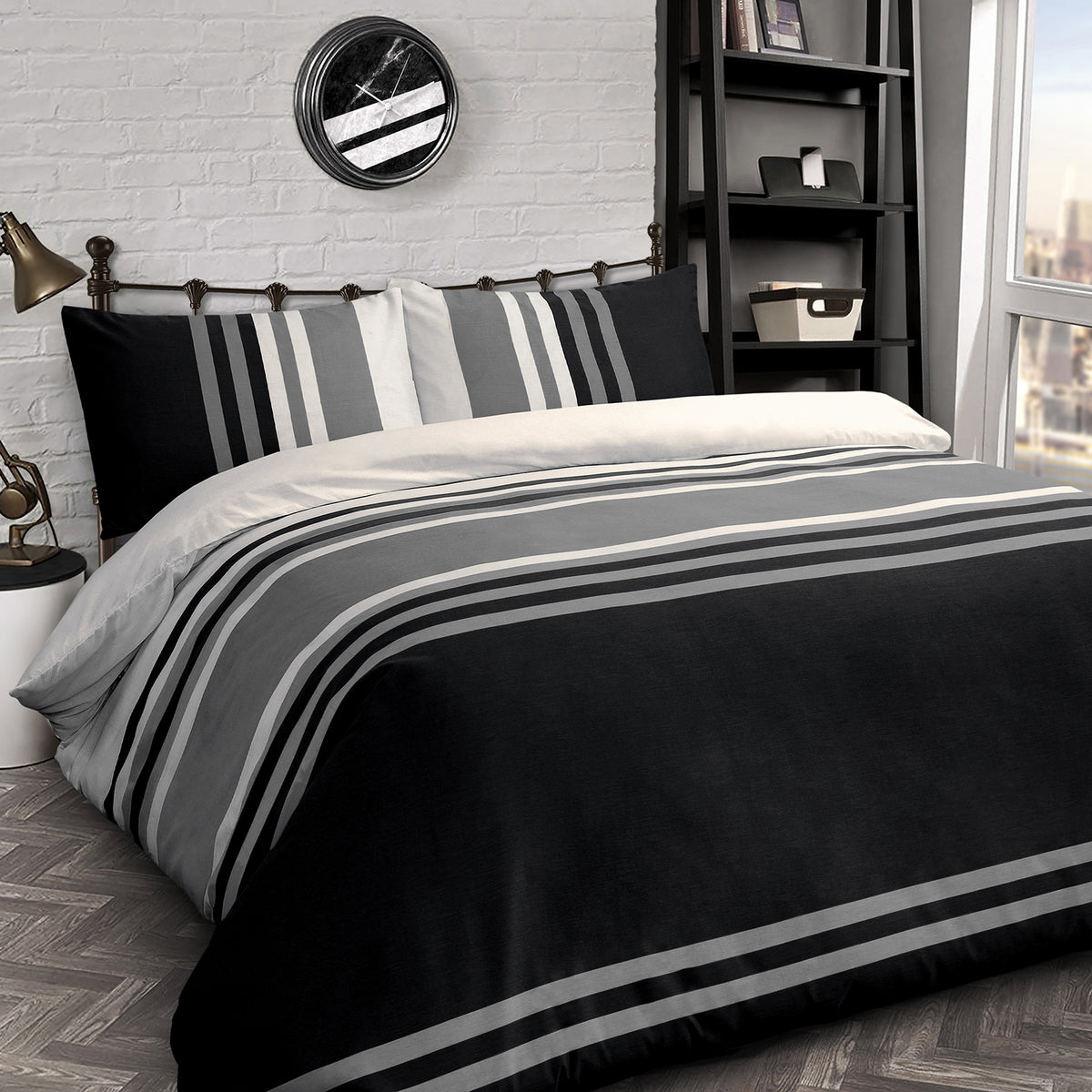 Make a statement in your bedroom with our striking geometric stripes duvet cover set in bold black, grey, and white colours. This sleek and crisp bedding set comes complete with matching pillowcases, adding a touch of sophistication to your linen cupboard. Not only does this set look great, but it's also incredibly comfortable.