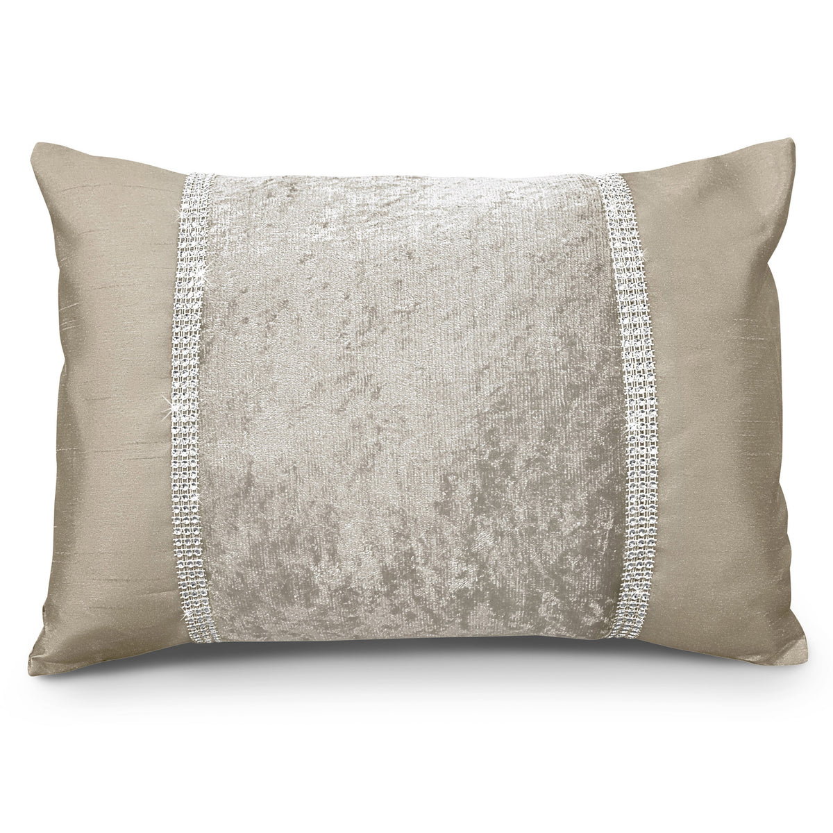 Adorned with a stunning diamante lace on either side of the cushion, this boudoir cushion is the epitome of luxury and sophistication. The super-soft crushed velvet fabric is sumptuous to the touch and has a natural sheen and shimmer that adds a touch of elegance and style to your décor. Whether you're looking to upgrade your living space or create a chic and fashionable bedroom, this natural boudoir cushion is the perfect choice.