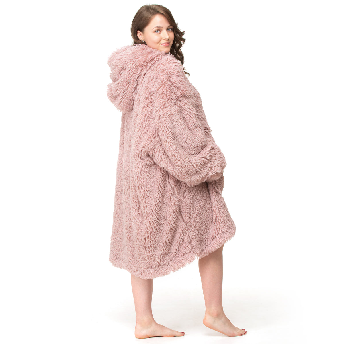 Shop our Velosso Alaska Faux Fur Blush Pink Oversized Hoodie, your go-to for cosy comfort and sleek style. Made from luxurious faux fur with a Sherpa teddy reverse, this oversized sweatshirt promises ultimate warmth and softness. Made from 100% polyester, it's not just stylish but also easy to care for with machine washable instructions. Available in one size, it's designed to fit everyone comfortably. Whether you're lounging at home or braving the cold outdoors, this blush pink hoodie is your perfect companion.