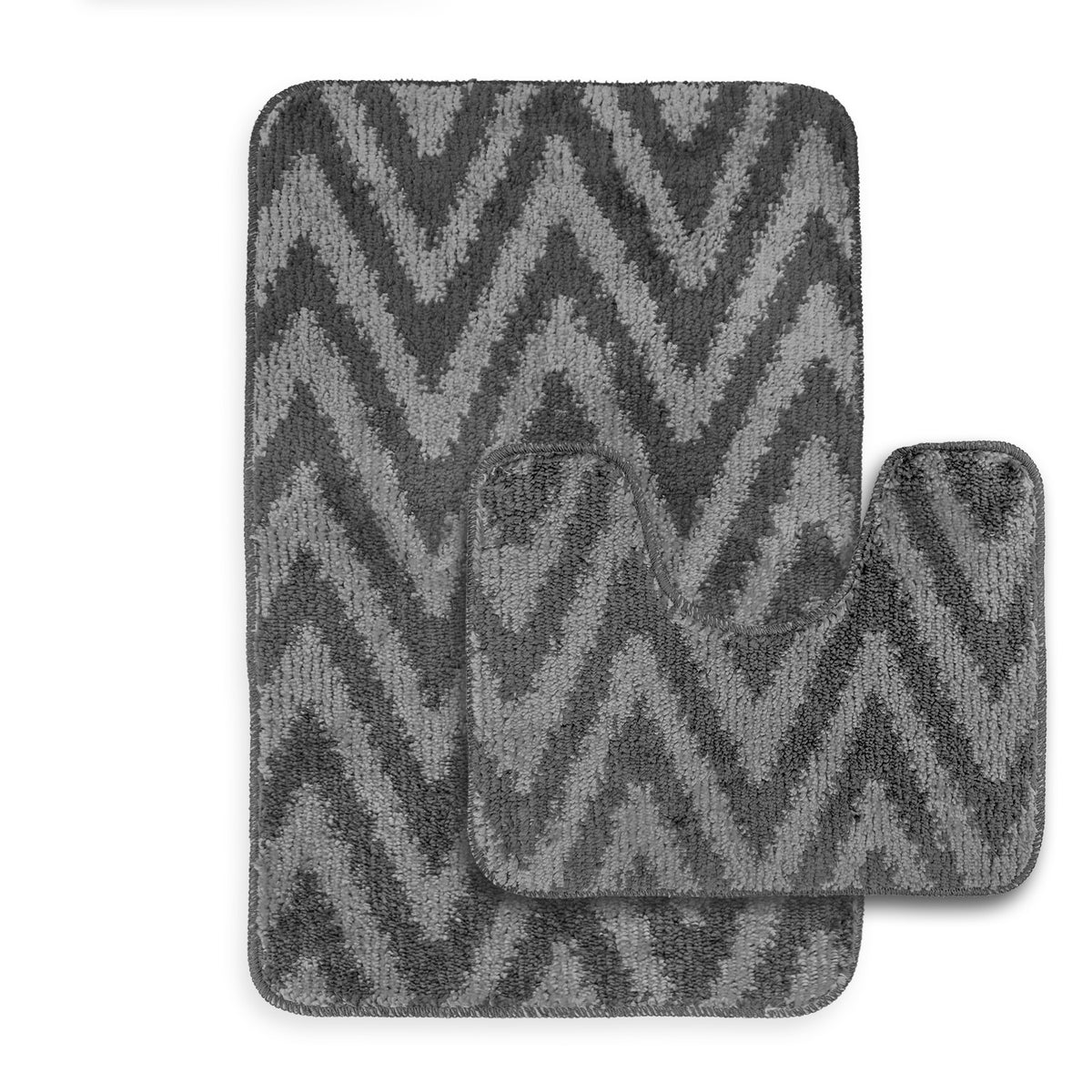Upgrade your bathroom with the Chevron Stripe Non Slip Bath Mat Set—a safe choice that brings a fresh look to your space. This set includes a plush bath mat and a matching pedestal rug, each featuring a modern chevron design to add a sophisticated touch. The soft 100% polypropylene top layer feels great underfoot, making every step after a shower warm and comfortable.