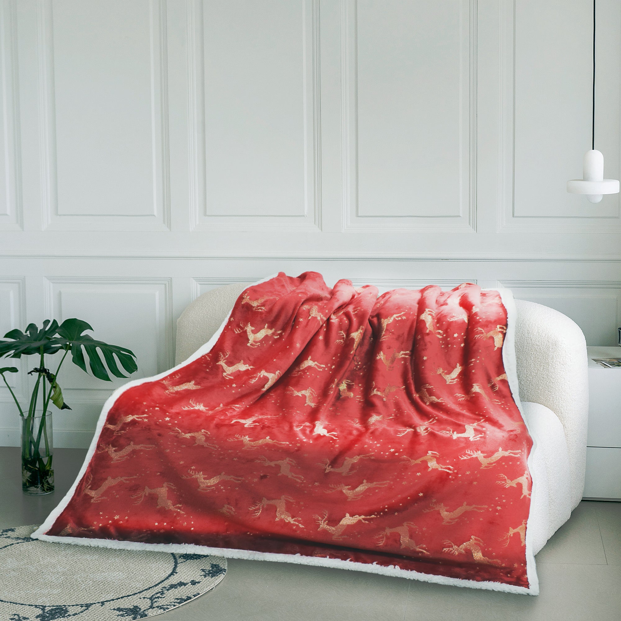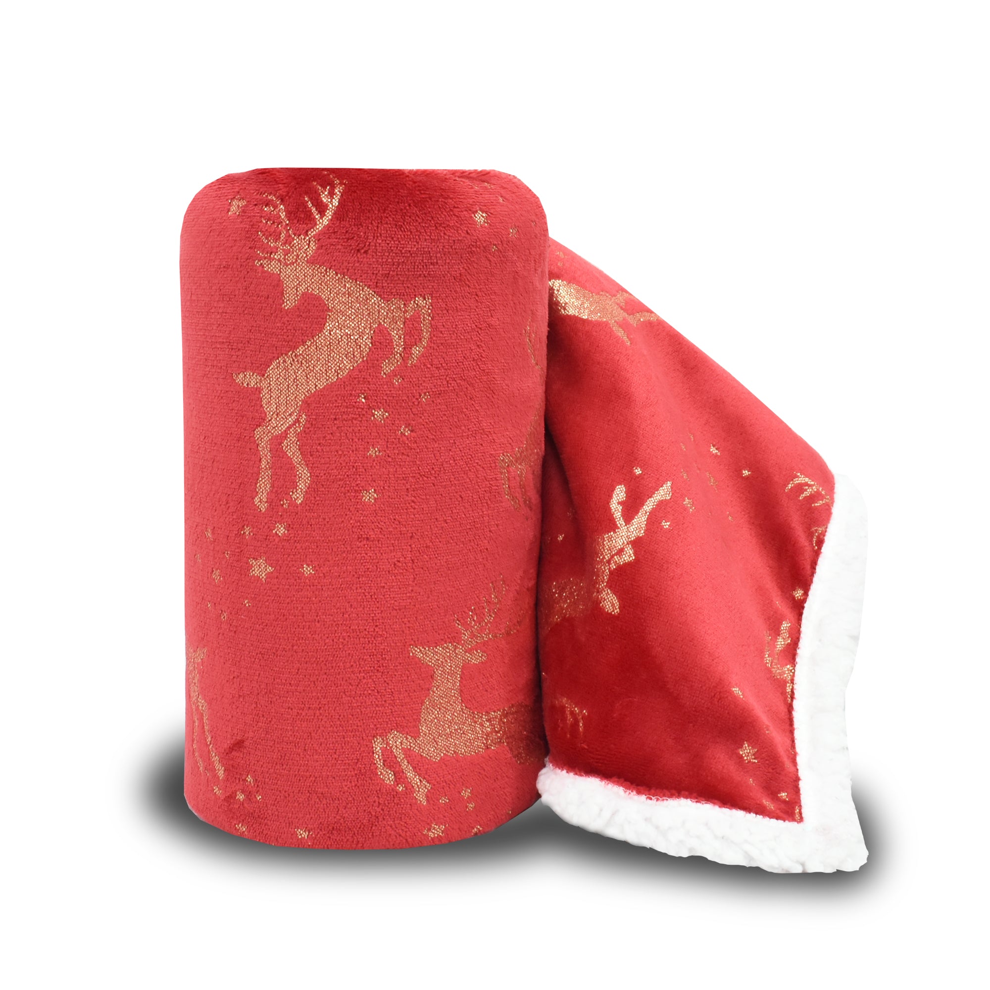 A super soft textured blanket in a contemporary shade of red. The perfect addition to your relaxing space this festive season, this blanket oozes shimmering stars and stag and possess every quality desired in a winter warmer. A luxury plush blanket great to share with your loved ones, easy to care for with wrinkle and crease resistance.