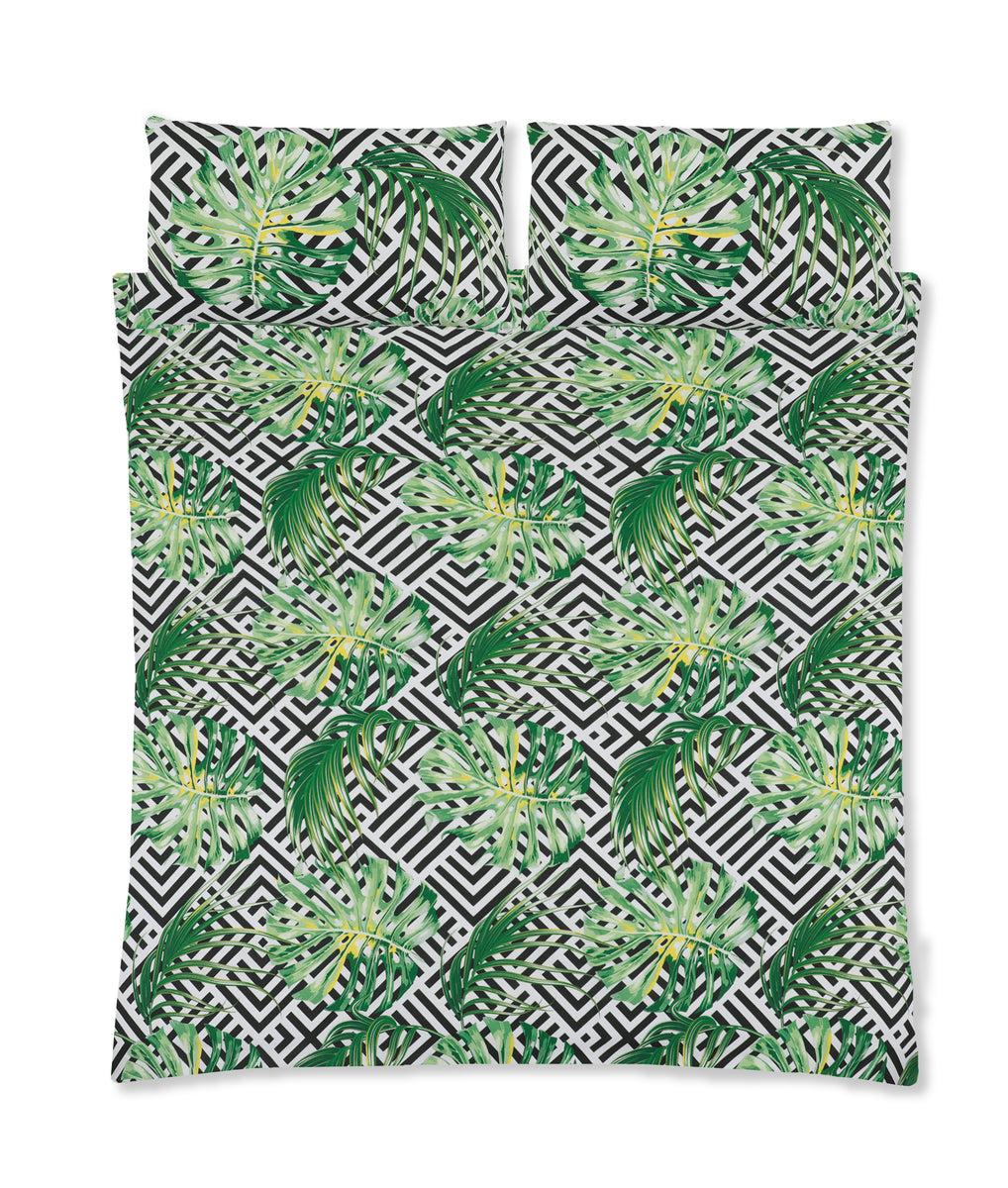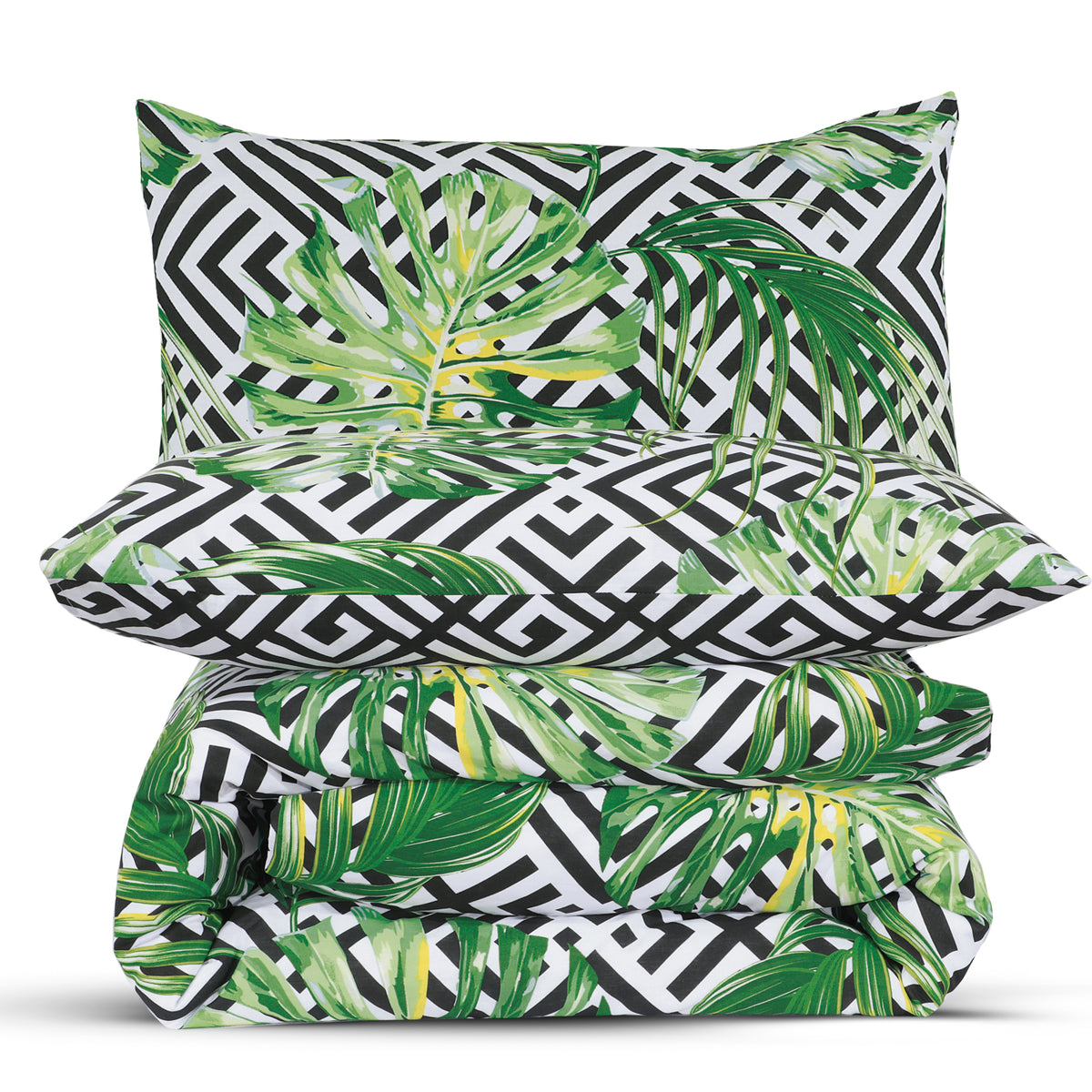 Shop our Velosso Ethnic Aztec Monochrome Tropical Leaves Duvet Cover & Pillowcase Set. This set envelops you in softness and comfort, offering a cocoon of luxury night after night. The monochrome palette of black and white creates a striking contrast, while the intricate Greek key design adds classical beauty to your bedroom décor. What sets this duvet cover apart is the addition of tropical palm trees in the foreground. This unique combination of geometric elegance with tropical motifs adds a touch of exotic charm to your bedroom sanctuary.