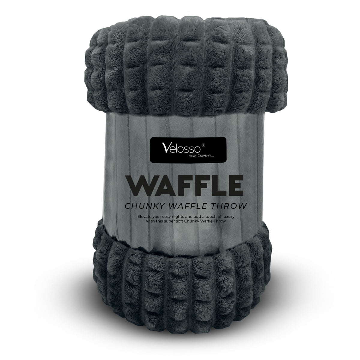 Velosso Super Chunky Waffle Plush Soft Blanket - Charcoal