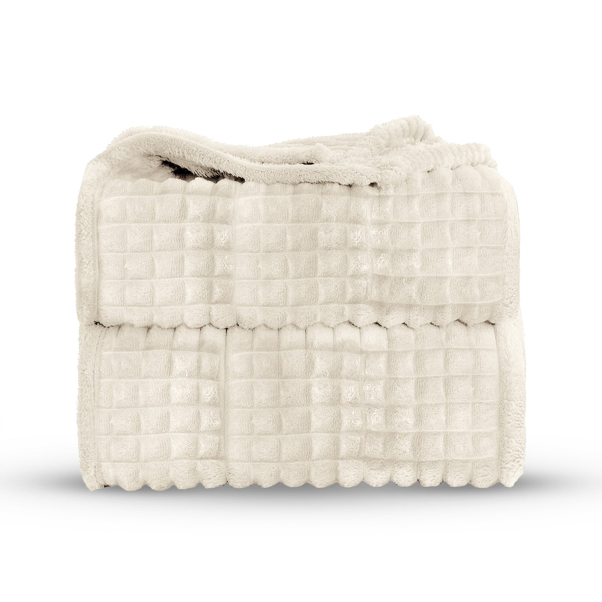 Velosso Super Chunky Waffle Plush Soft Blanket - Ivory