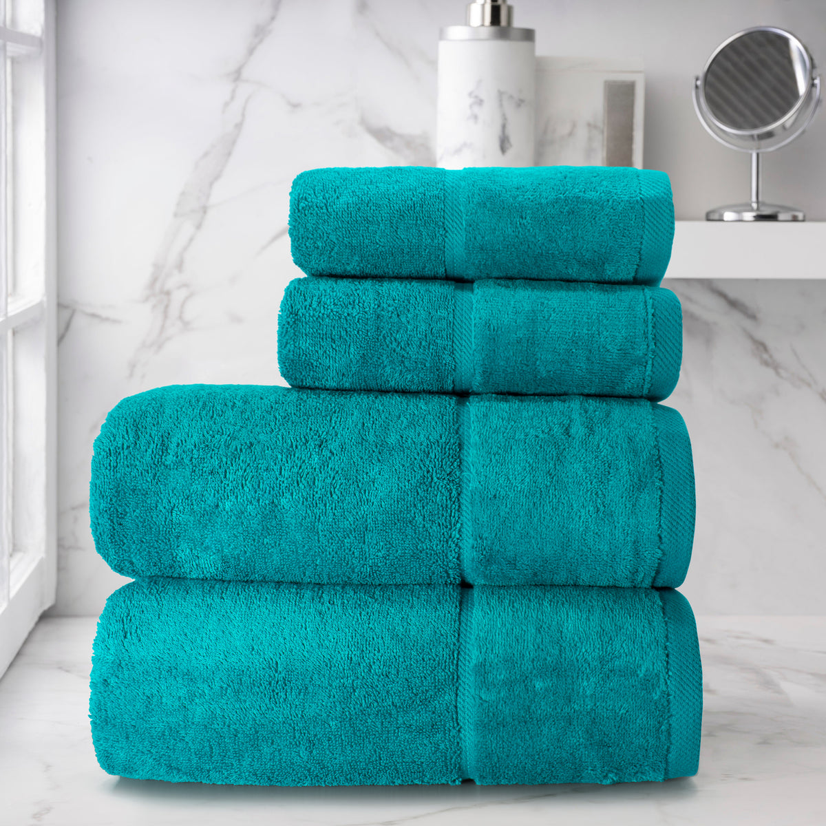 Upgrade your daily routine with our Velosso Plush Velour Jade 4 Piece Bath Towel Bale Set. Made from 100% cotton and featuring a quality 500gsm weight, this set consists of 2 hand towels measuring 50cm x 80cm and 2 bath towels measuring 70cm x 120cm, providing a perfect combination of sizes for any bathroom.