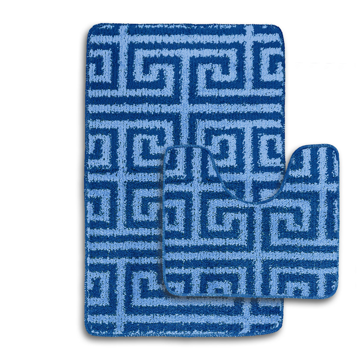 Upgrade your bathroom with our Velosso Luxe Anti Slip Bath Mat Set an elevating addition to any bathroom—This modern set includes a plush bath mat and pedestal rug, featuring a sophisticated Greek key pattern that enhances any space. Made from 100% polypropylene, it offers a soft feel and effortless elegance.