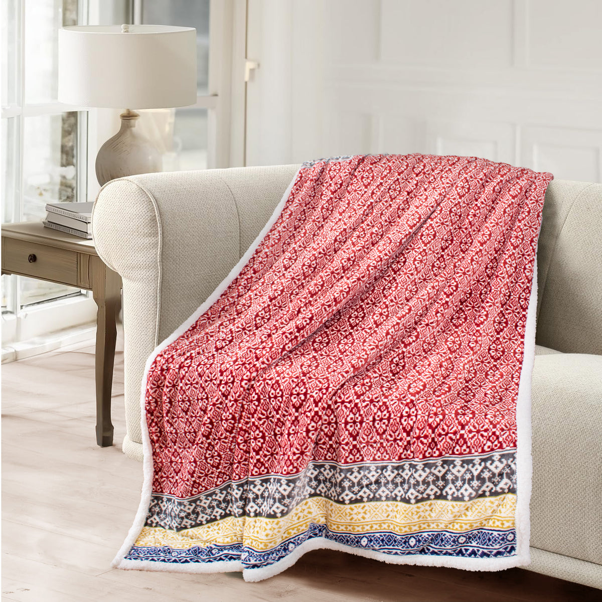 Velosso Luxury Aztec Sherpa Reverse Throw - Red