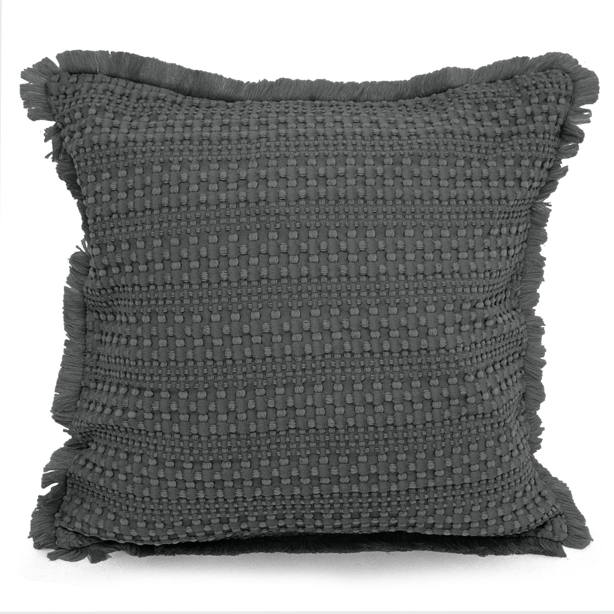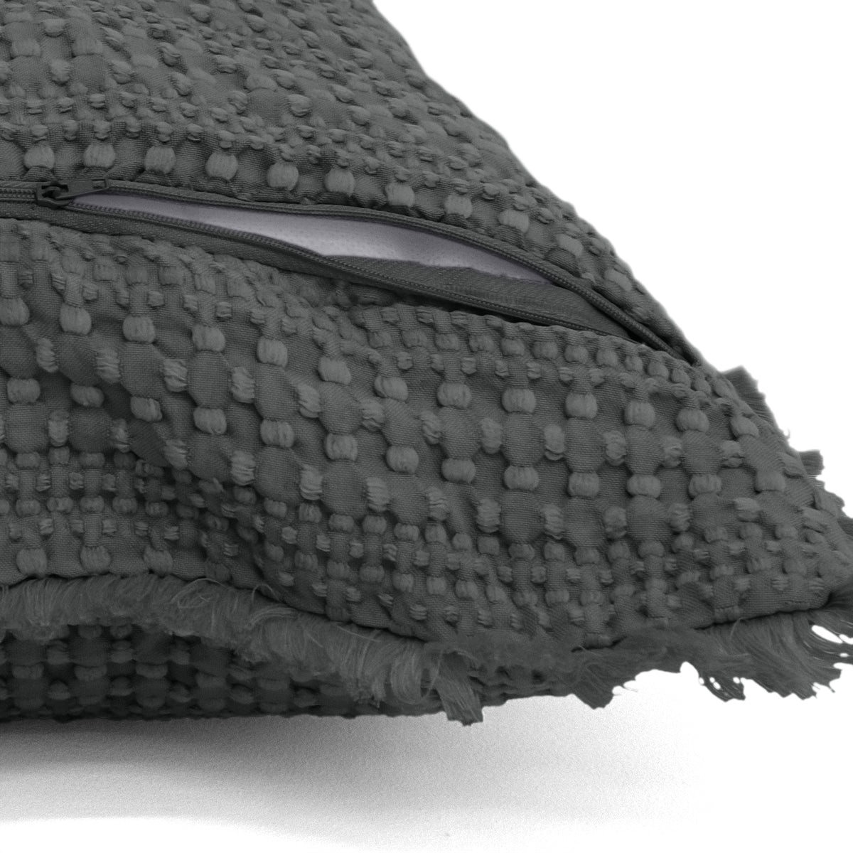 Velosso Luxury Waffle Fringed Shabby Chic 43cm x 43cm Cushion Cover - Charcoal
