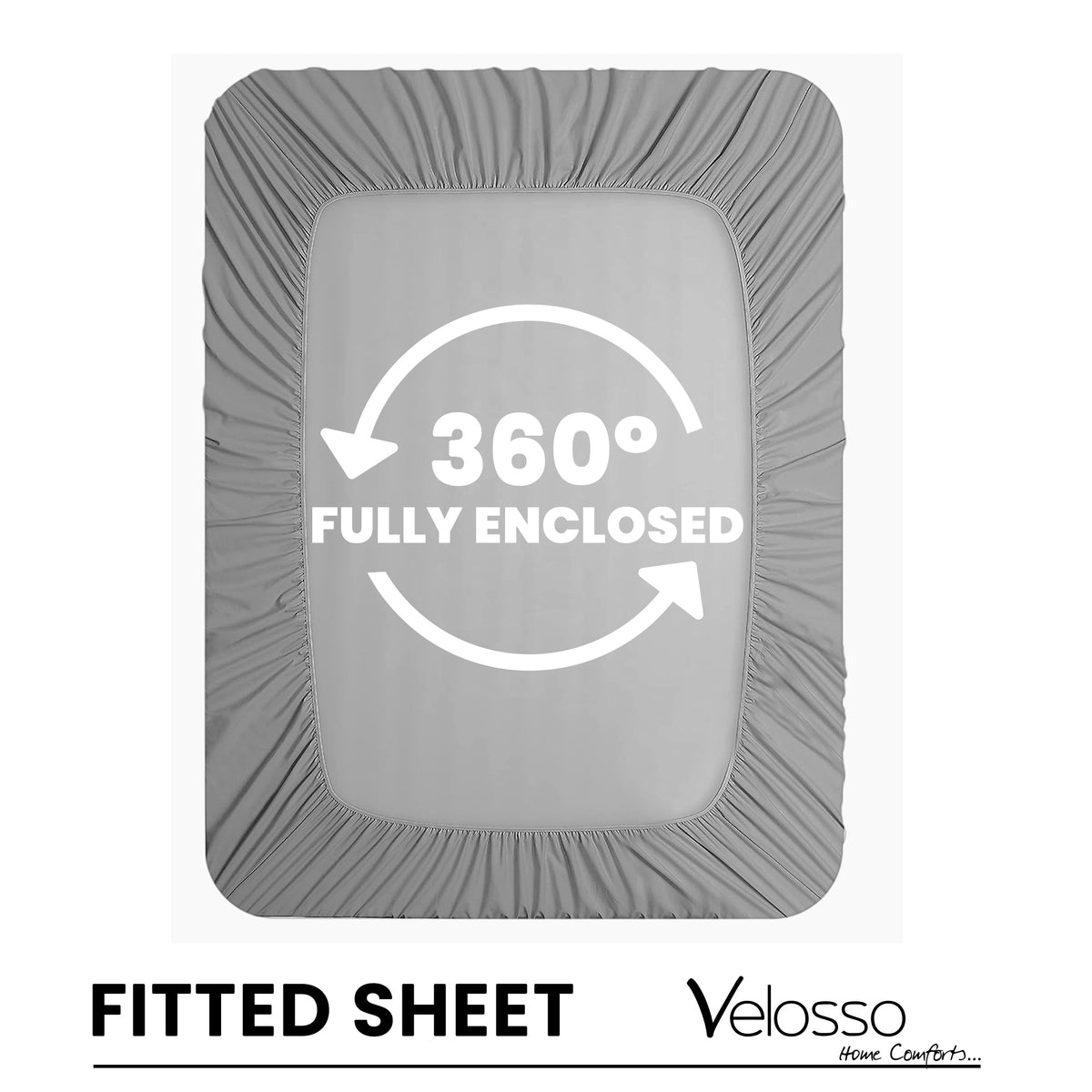 Velosso Super Soft Plain Grey Microfibre Fitted Sheet
