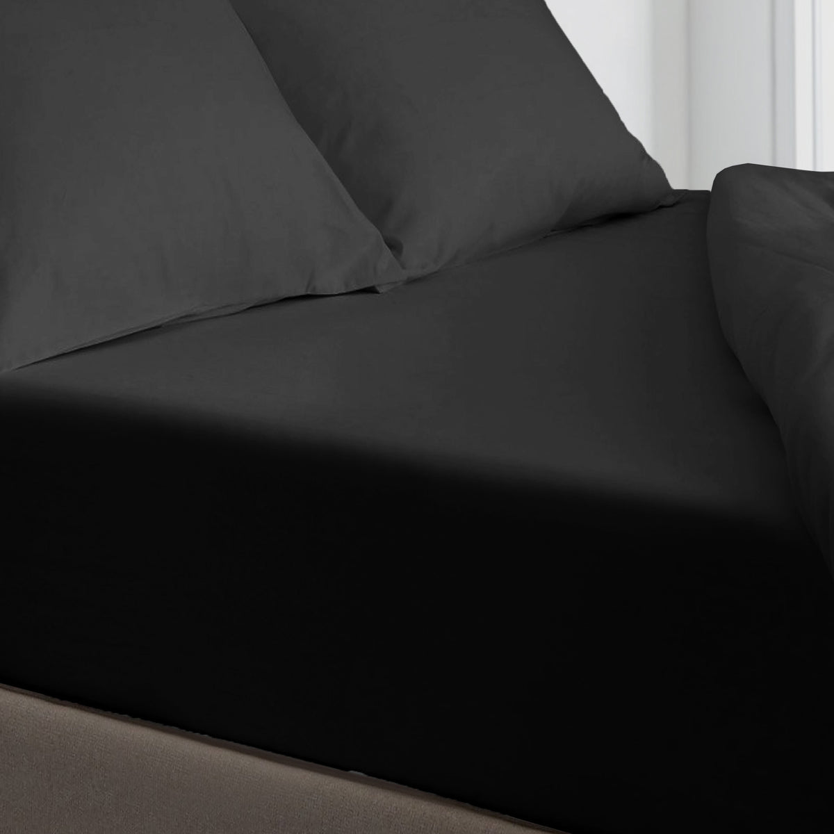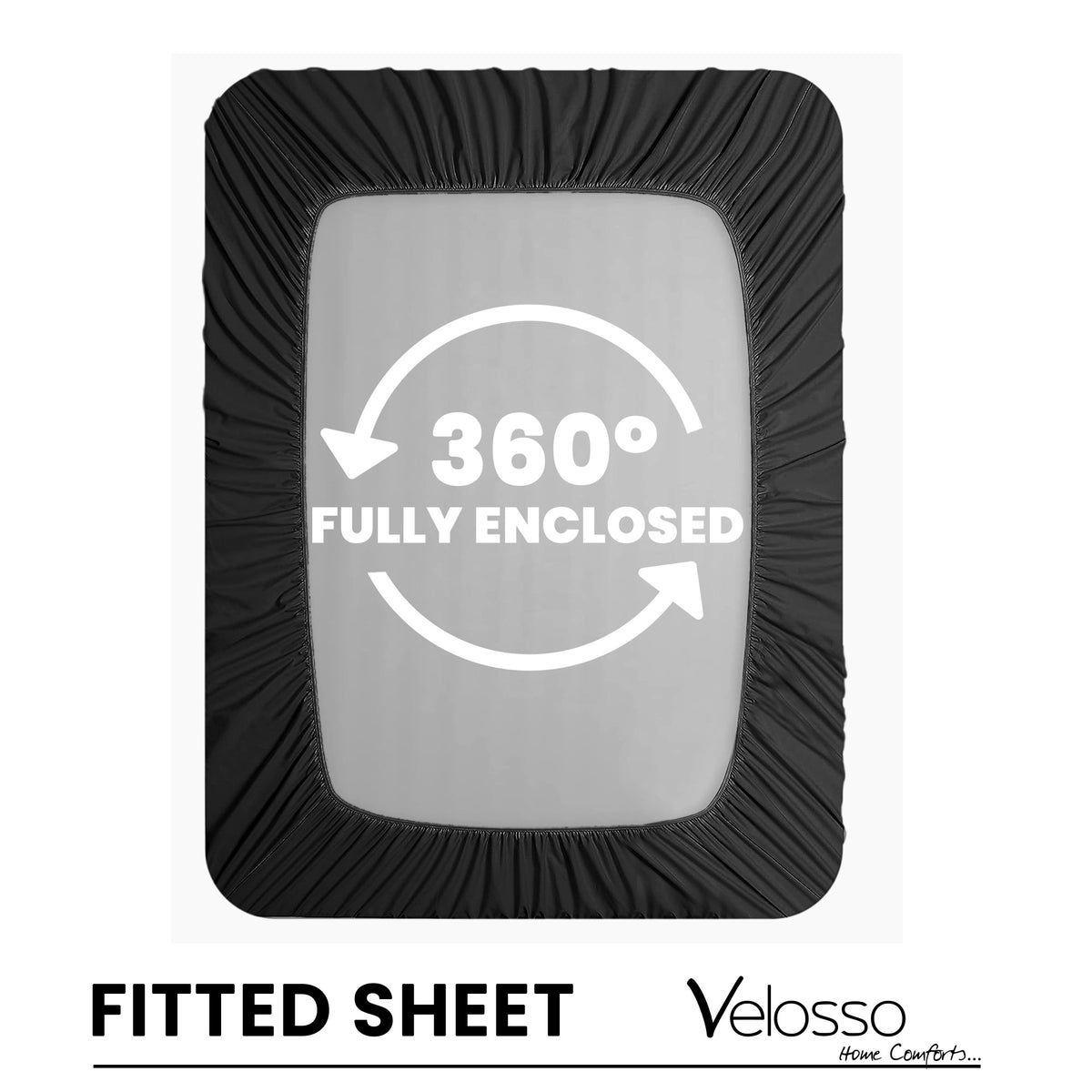 Velosso Super Soft Plain Black Microfibre Fitted Sheet