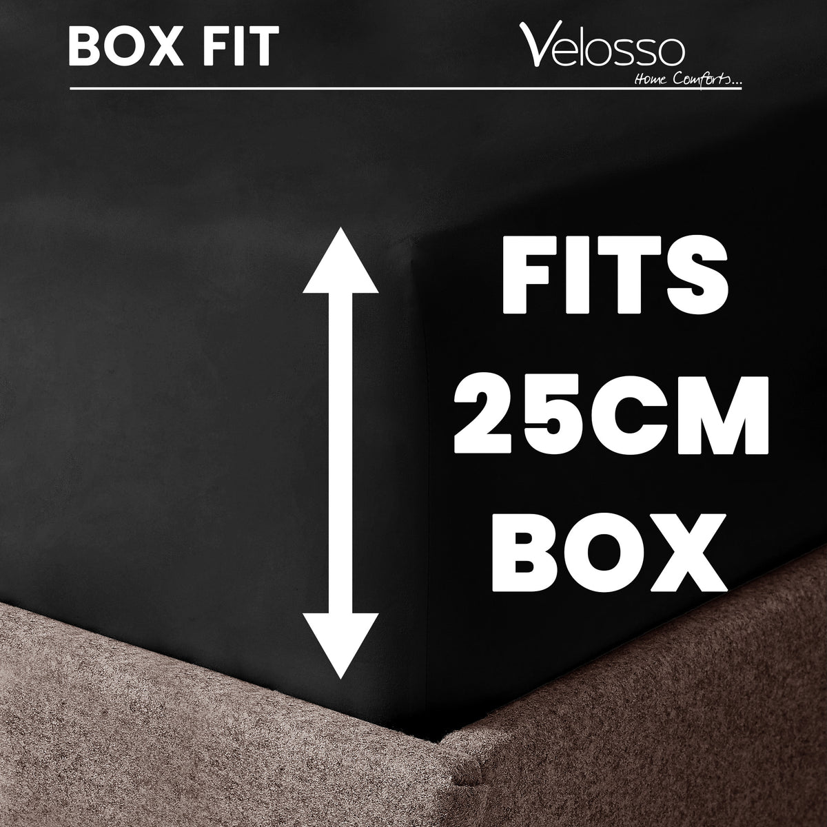 Our Velosso Super Soft Plain Black Microfibre Fitted Sheet is the perfect blend of comfort and convenience for a restful night's sleep. Crafted from ultra-soft microfibre fabric, this plain black fitted sheet is designed for easy care. With a box depth of 25cm, it offers a snug and secure fit for your mattress, ensuring it stays in place throughout the night.