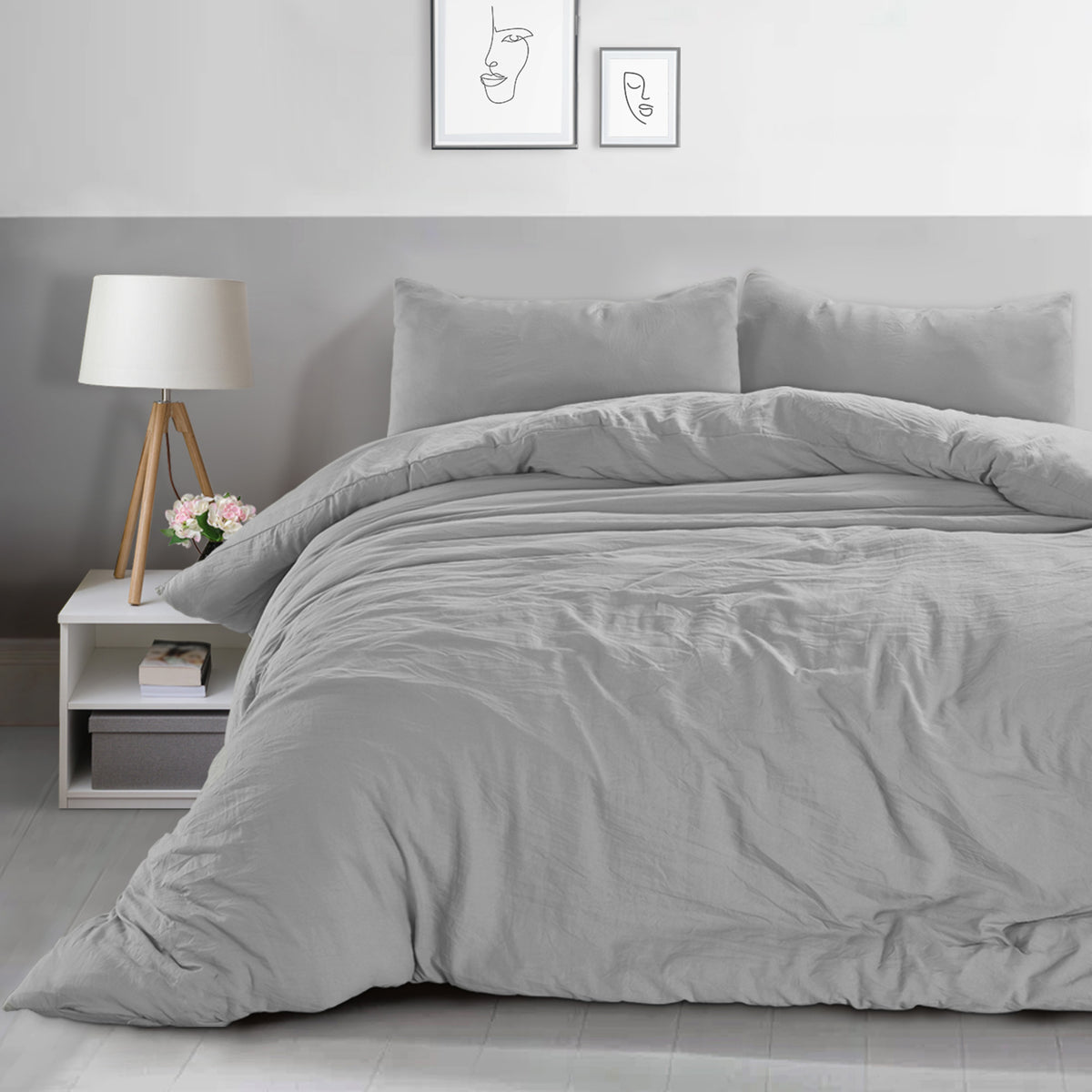 Choose our Velosso Washed Linen Look Silver Duvet Cover & Pillowcase Set, where comfort meets rustic charm for a truly inviting bedroom oasis. Made from premium microfibre fabric, this duvet cover set offers the perfect balance of softness and durability. The innovative washing process gives the fabric a beautifully relaxed appearance, reminiscent of your favourite well-loved linens. Each silver bedding set includes matching pillowcases with envelope closures for a tailored finish and added convenience.