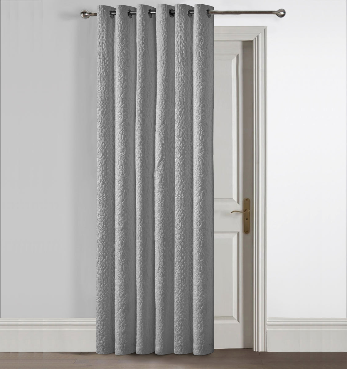 Transform your living space with our exquisite Velosso Winchester Grey Quilted Pinsonic Blackout Door Curtain Panel, meticulously designed to merge opulence with functionality. Featuring a refined pinsonic design, this door curtain introduces a dimension of sophistication and charm to any interior.