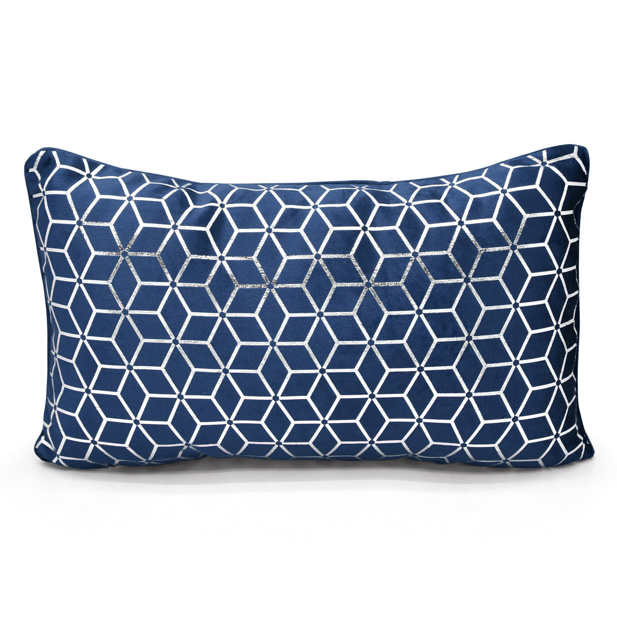 Elevate your room décor with our Intimates Vera Navy Crushed Velvet Boudoir Cushion. This stunning decorative accent is the perfect addition to your favourite chair, sofa, or bed. The plush cushion boasts a soft and sumptuous crushed velvet fabric with a natural sheen that shimmers beautifully in any lighting. The intricate foil design covering the entire cushion adds a touch of glamour and elegance to any room. Pair it with a matching bedspread or bedding to create a sleek and sophisticated look. Let this chic navy boudoir cushion bring a sense of style and sophistication to your space.