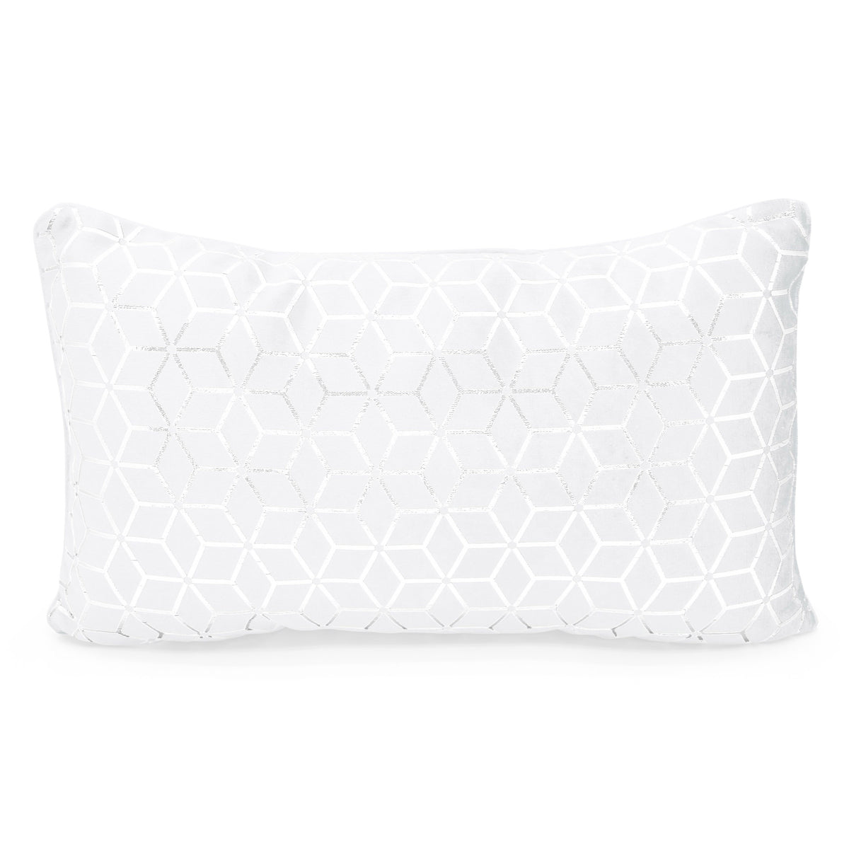 Have your room decorated with this lovely, plush decorative accent, a stylish boudoir cushion, you can have this plumped up on your favourite chair, sofa or displayed on your bed with a matching bedspread, or bedding. Our Vera geometric foil-print boudoir is soft, cosy and very sleek looking, it is designed with an intricate foil design that covers the entire cushion, this creates a very glamorous and dazzling look. The cushion fabric is super-soft and sumptuous and has a natural sheen/shimmer on it which shines against natural and artificial lighting. Have this beautiful chic cushion bring a sense of fashion to your chosen room.