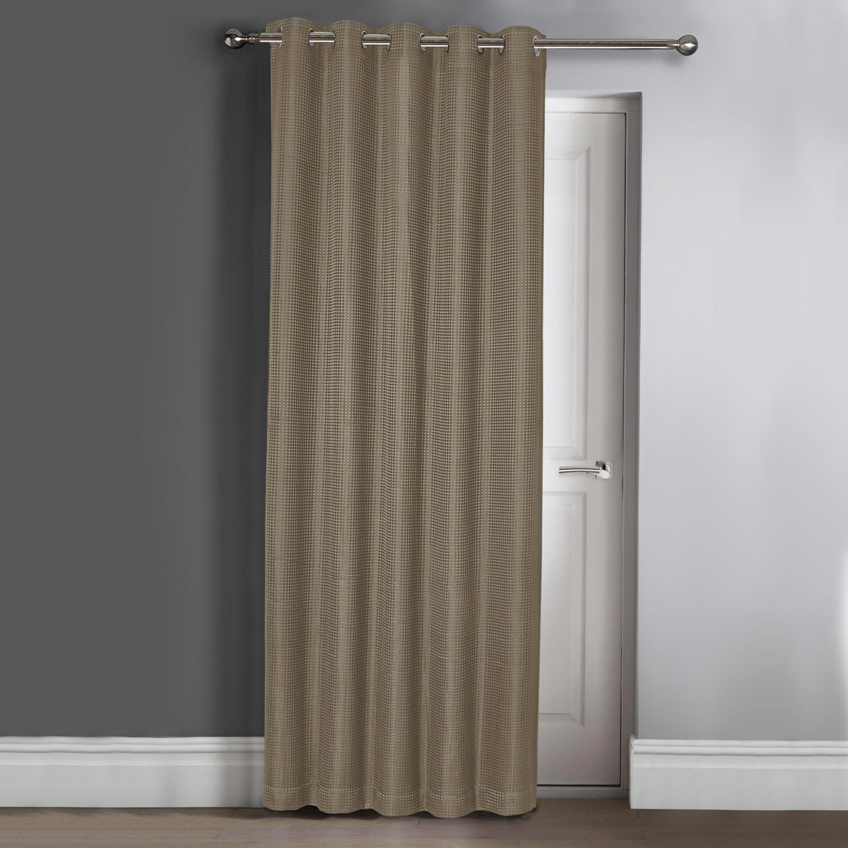 Add the finishing touch to your space with our Velosso Waffle Jacquard Natural Total Blackout Door Curtain Panel. Made with attention to detail, this door curtain features a refined waffle jacquard design that adds sophistication and charm to any interior. With exceptional blackout capabilities, this curtain panel offers unparalleled light control, creating a haven of darkness and seclusion whenever desired.