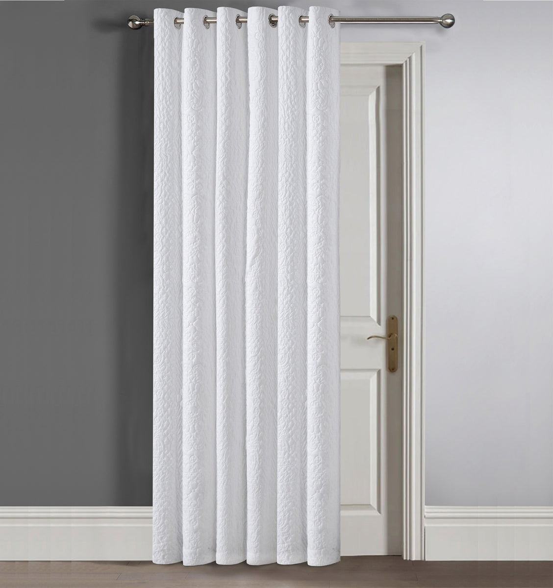 Transform your living space with our exquisite Velosso Winchester White Quilted Pinsonic Blackout Door Curtain Panel, meticulously designed to merge opulence with functionality. Featuring a refined pinsonic design, this door curtain introduces a dimension of sophistication and charm to any interior.