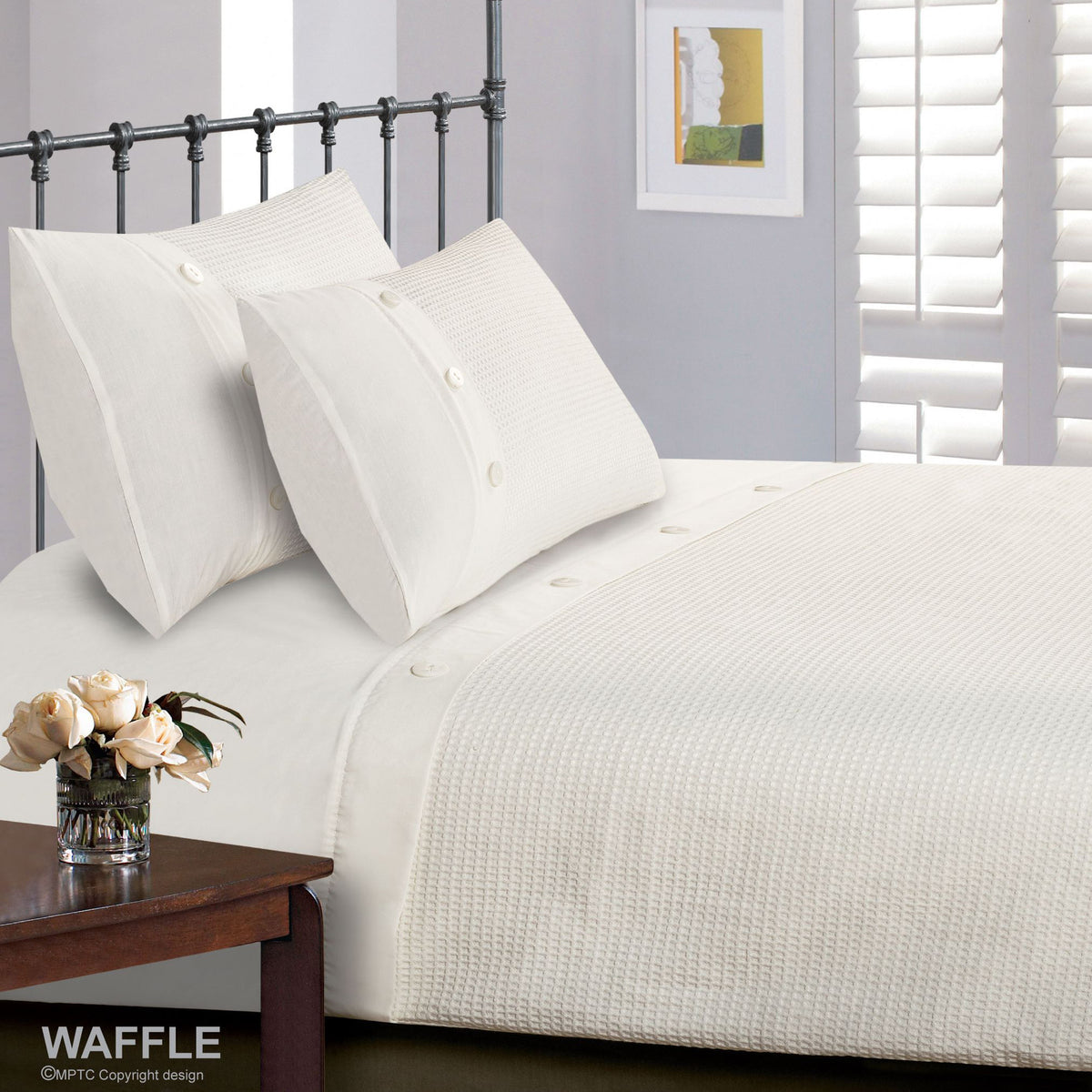 Elevate your bedroom décor with this sophisticated yet simple white waffle fabric bedding. The beautiful textured fabric is accented with white buttons, adding a touch of elegance to any room. Choose our classic Intimates Waffle Button White Duvet Cover and Pillowcase Set, made from a comfortable and durable polyester fabric.