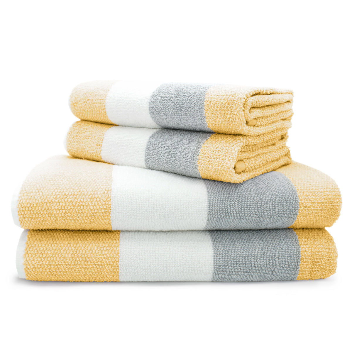Discover the luxurious feel of our Velosso Weston 500gsm Cotton Ochre Yellow Striped Towels, made from 100% premium quality cotton. With a thick and fluffy texture, these towels offer superior absorbency and a gentle touch on your skin. The stunning ochre yellow stripe pattern alternates with crisp white and grey to create a sophisticated look that will elevate your bathroom décor. Our Weston towels come in both hand towel and bath sheet sizes to fit your needs. And the best part? They are machine washable and tumble dryer safe for easy cleaning.