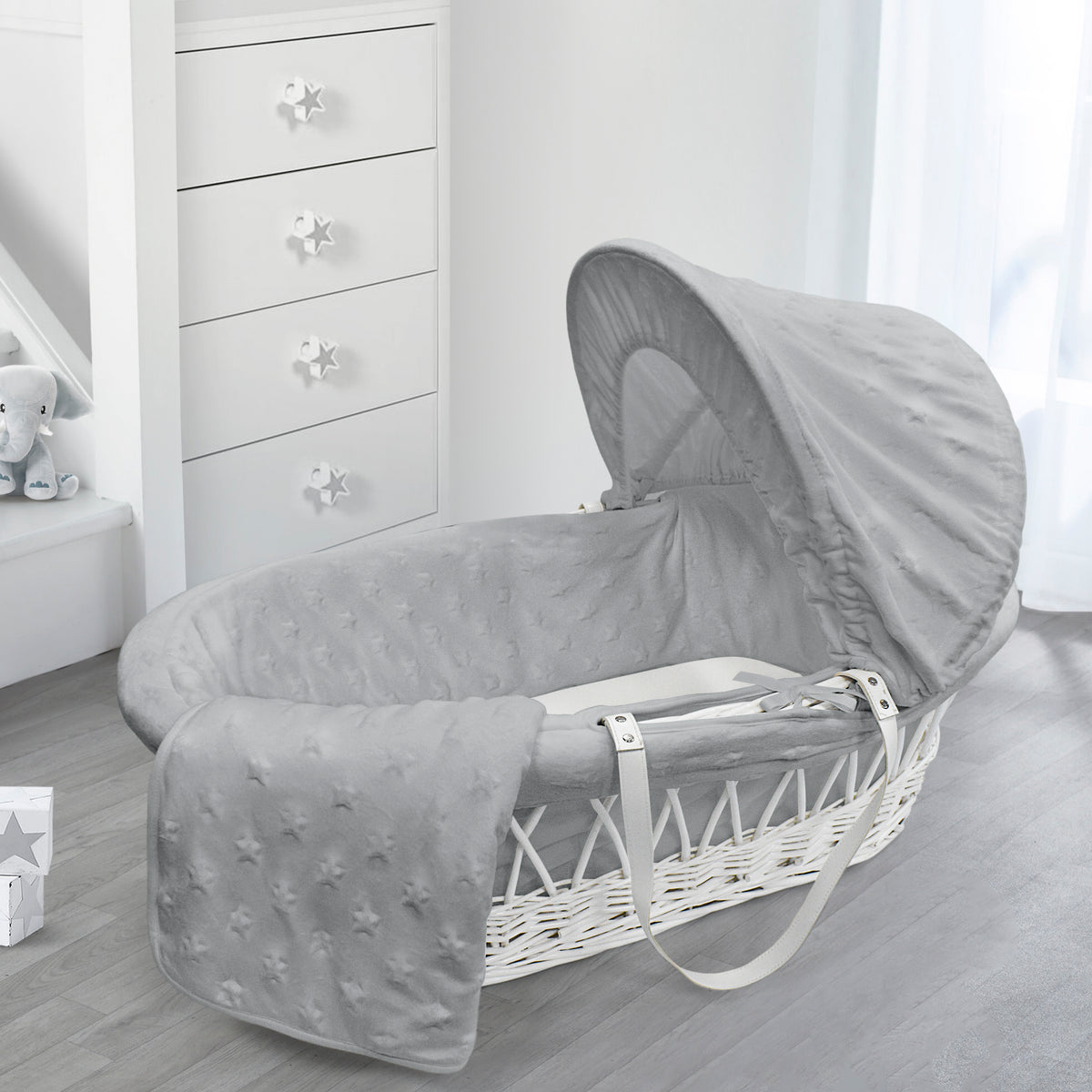 Looking for the perfect spot for your little one to drift off to dreamland? Look no further than our My Little World White Wicker Moses Basket & Grey Star Dressing.