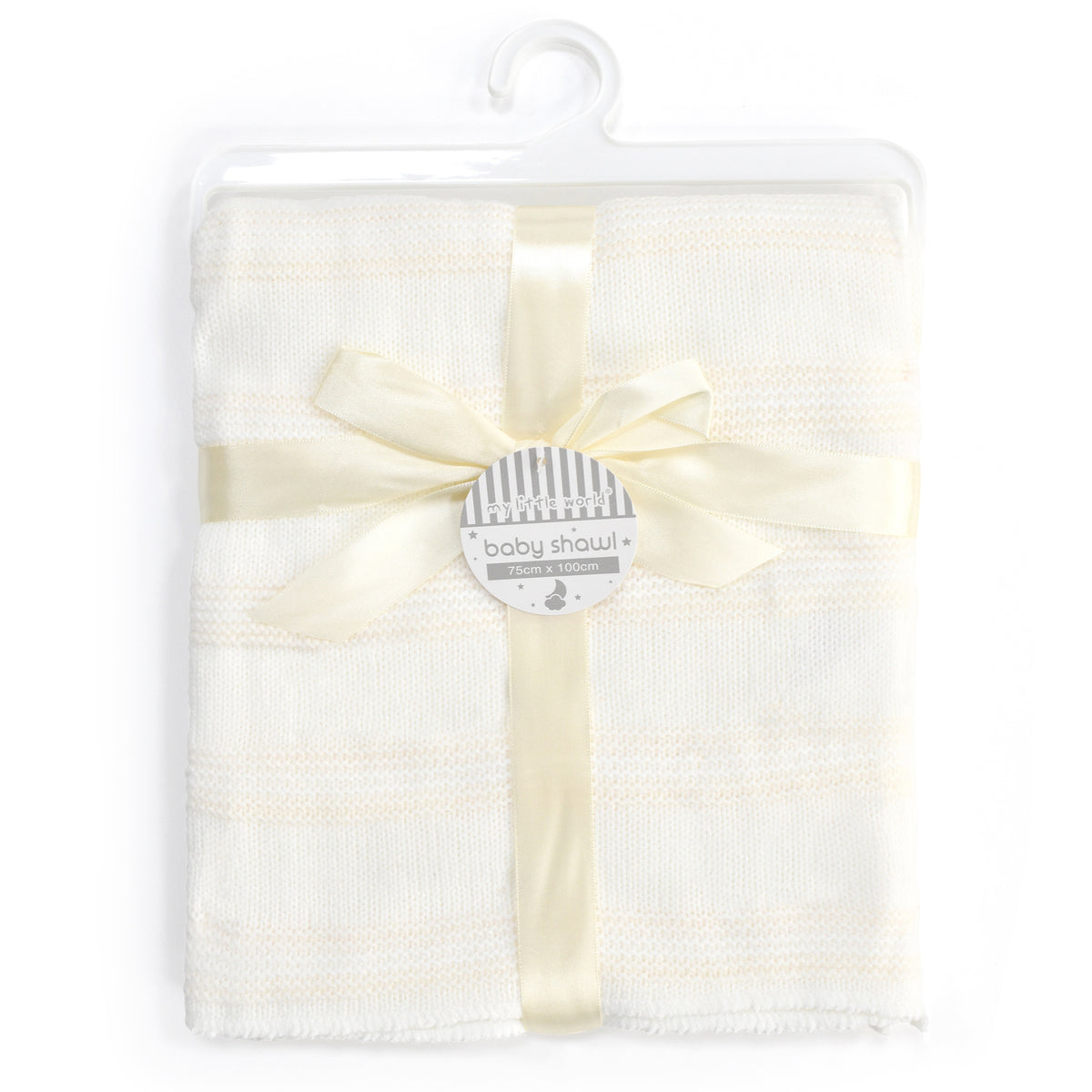 Looking for a stylish and cosy baby shawl? Look no further than our My Little World Yellow Stripe Knitted Baby Shawl. A gorgeous white and yellow striped shawl made with the utmost care and attention to detail, this shawl is perfect for keeping your baby warm and snug. Featuring a detailed woven and ribbed pattern, this shawl is both smart and cute, making it the perfect addition to any baby's wardrobe. Whether you're using it in a Moses basket or a cot, this yellow stripe knitted shawl is sure to provide your little one with the ultimate comfort.